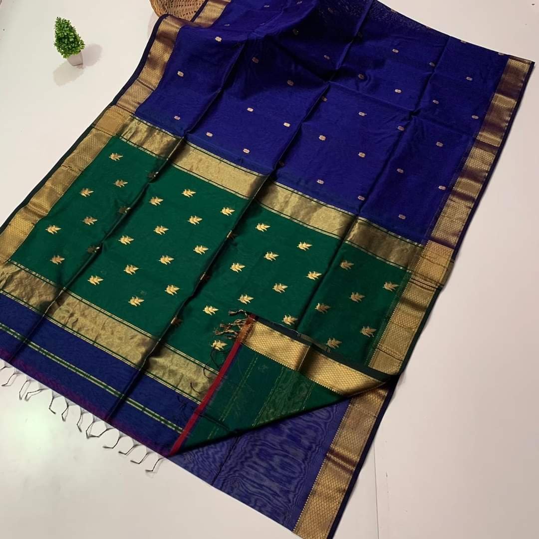 The Jewel of Maheshwar: Navy Blue & Emerald Green Silk Cotton